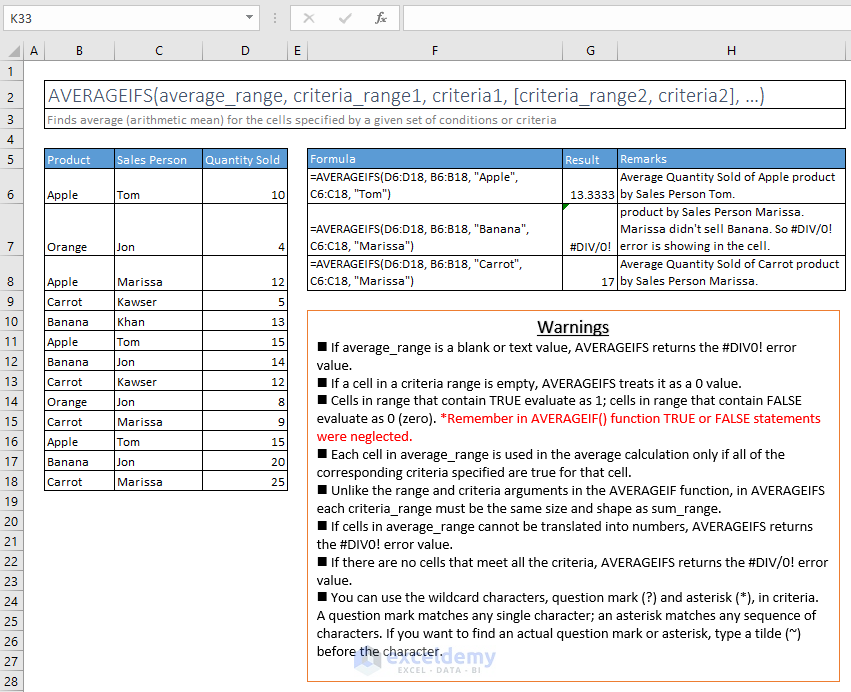 =AVERAGEIFS(average_range, criteria_range1, criteria1, [criteria_range2, criteria2], …)