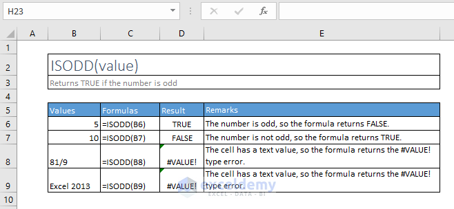 Checks whether a value is an error (#VALUE!, #REF!, #DIV/0!, #NUM!, #NAME?, or #NULL!) excluding #N/A, and returns TRUE or FALSE