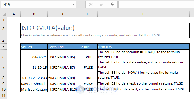 Checks whether a reference is to a cell containing a formula, and returns TRUE or FALSE