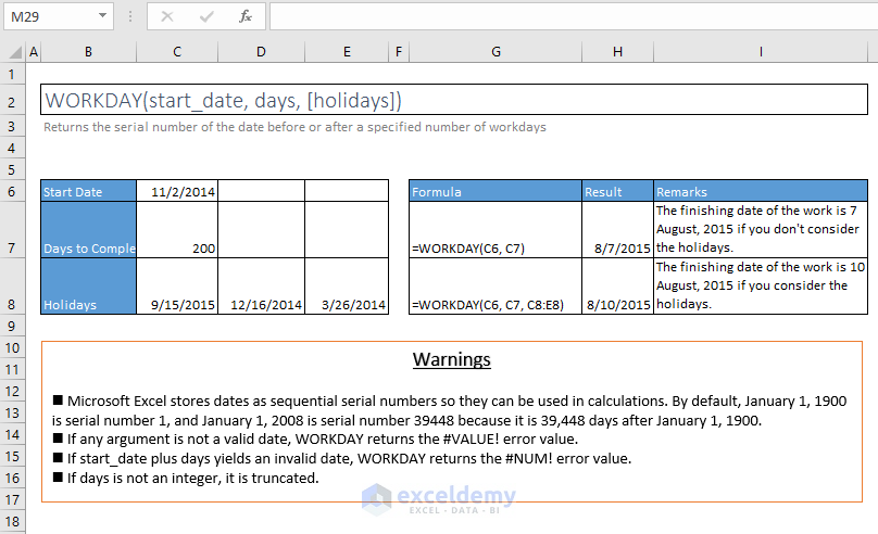=NETWORKDAYS(start_date, end_date, [holidays])