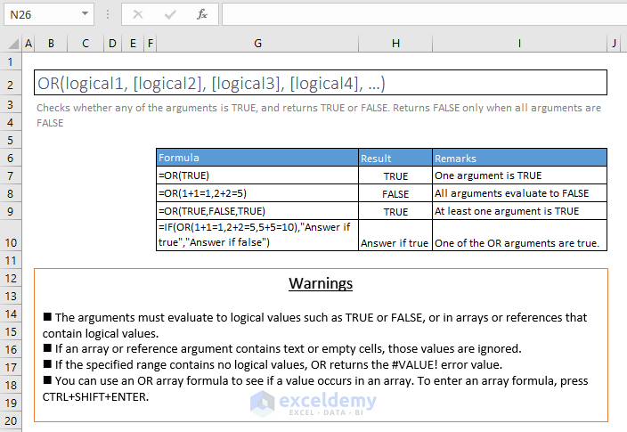 =OR(logical1, [logical2], [logical3], [logical4], …)